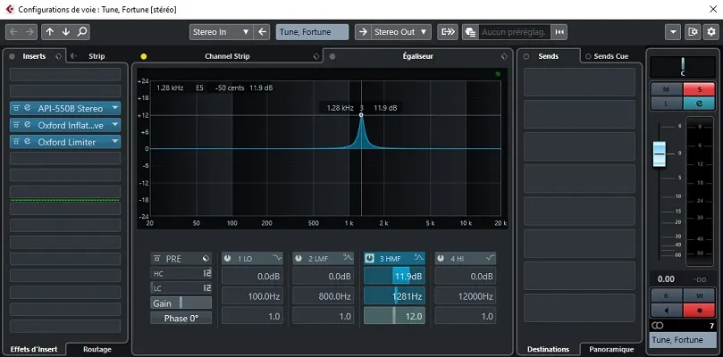 Si le morceau manque de mordant, vous pouvez expérimenter un léger boost sur les hauts médiums entre 1500 Hz et 3000 Hz.