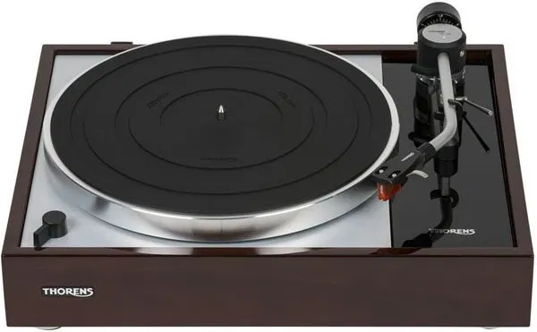 Voilà un modèle très haut de gamme proposé par Thorens. Comme souvent avec les produits de cette marque, ne vous attendez pas à des fioritures ou à des boutons lumineux partout. On est clairement dans une platine sobre, soignée et destinée à écouter de la musique chez soi.